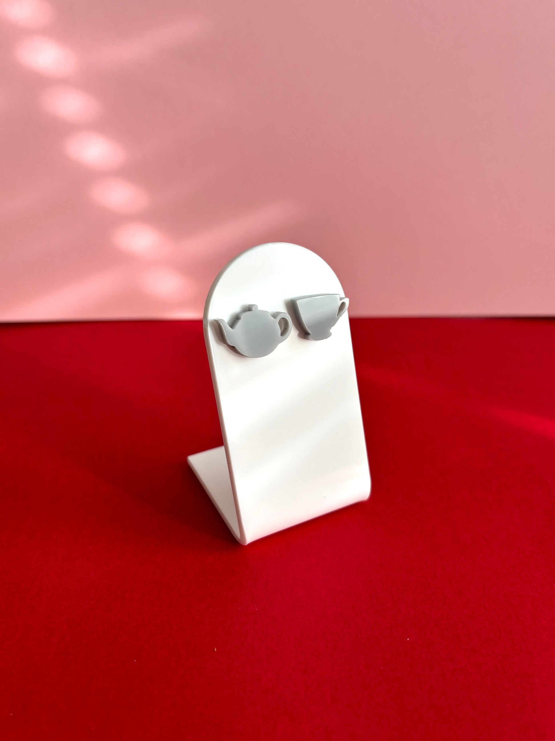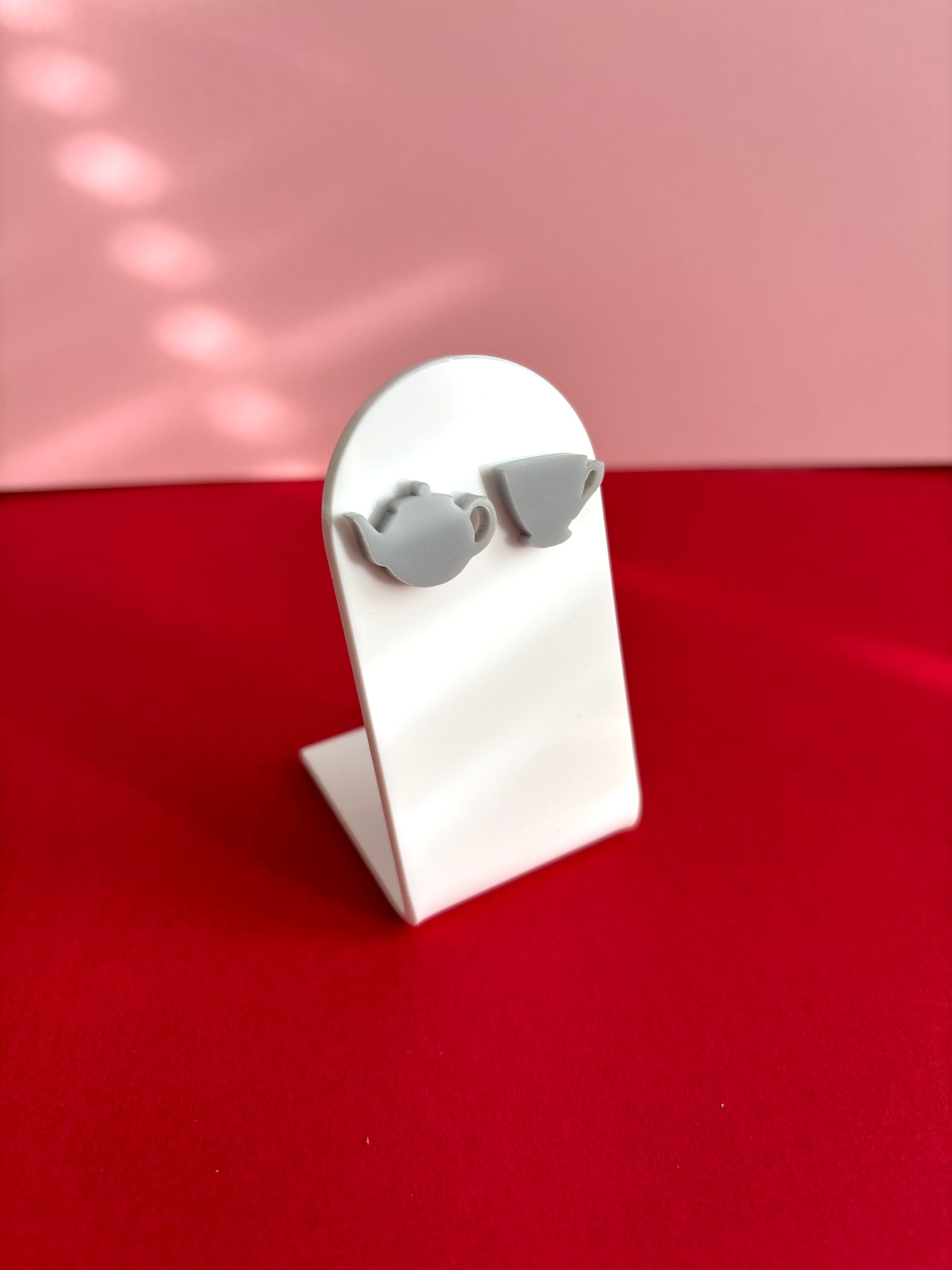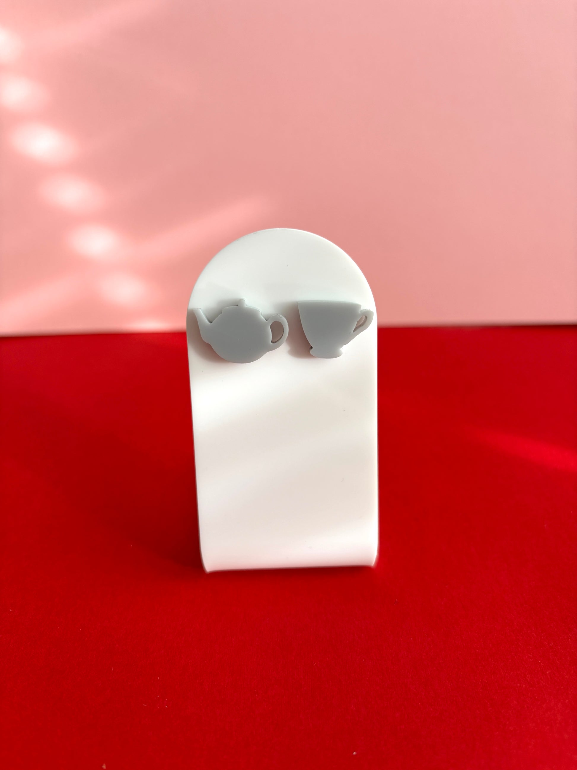 Tässä on täydellinen korvispari teenystävälle! Harmaat teesetti-nappikorvakorut, joista toinen on teepannu ja toinen on teekuppi. Värin ansiosta korvakorut on helppo yhdistää monen asun kanssa. Osta itsellesi tai lahjaksi - tai molemmille! Mikä parempi kuin samistella teekupin äärellä ystävän kanssa.