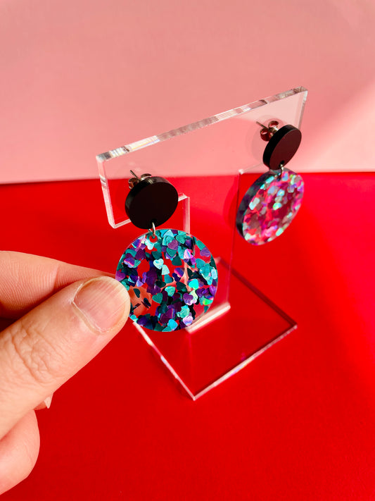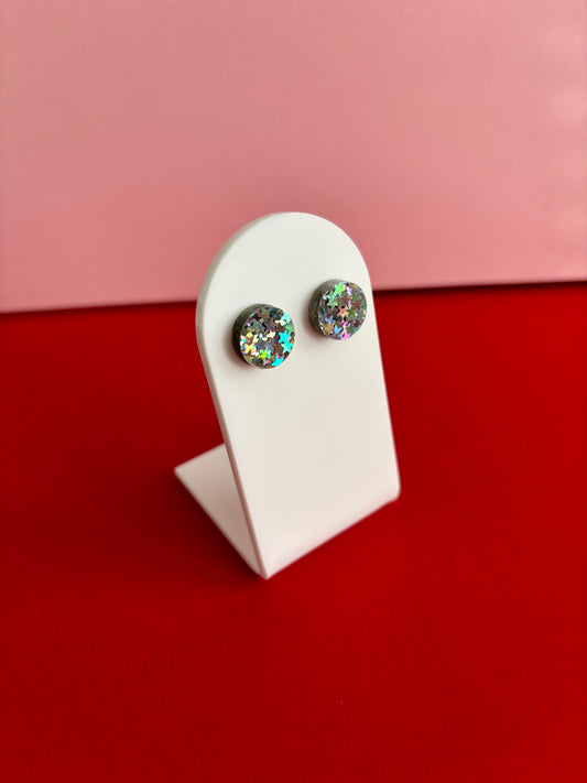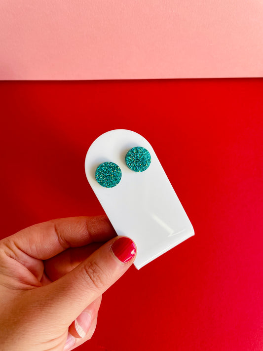 Pyöreät nappikorvakorut, sinivihreä glitter