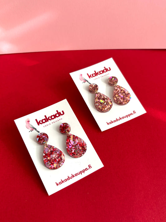 Kakadulla on monipuolinen valikoima käsintehtyjä ja värikkäitä akryylikorviksia. Lahessa tehtyjä! On nappeja ja roikkuvia, pieniä ja isoja, värikkäitä ja vähemmän värikkäitä, hienoa ja vähän rouheampaa glitteriä. Elämä nyt vaan on liian lyhyt tylsille korvakoruille.